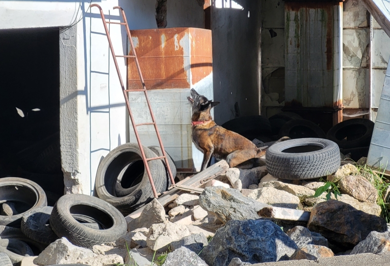 Karma en Znappie zijn al volwassen en hebben veel ervaring met verschillende zoeklocaties. Voor hen waren de zoekingen in de loods een fijne uitdaging. Vooral omdat hun baasje niet zo lenig en mobiel is, is het erg belangrijk dat ze zelfstandig doorzoeken, vooral wanneer de omgeving moeilijk bereikbaar is.